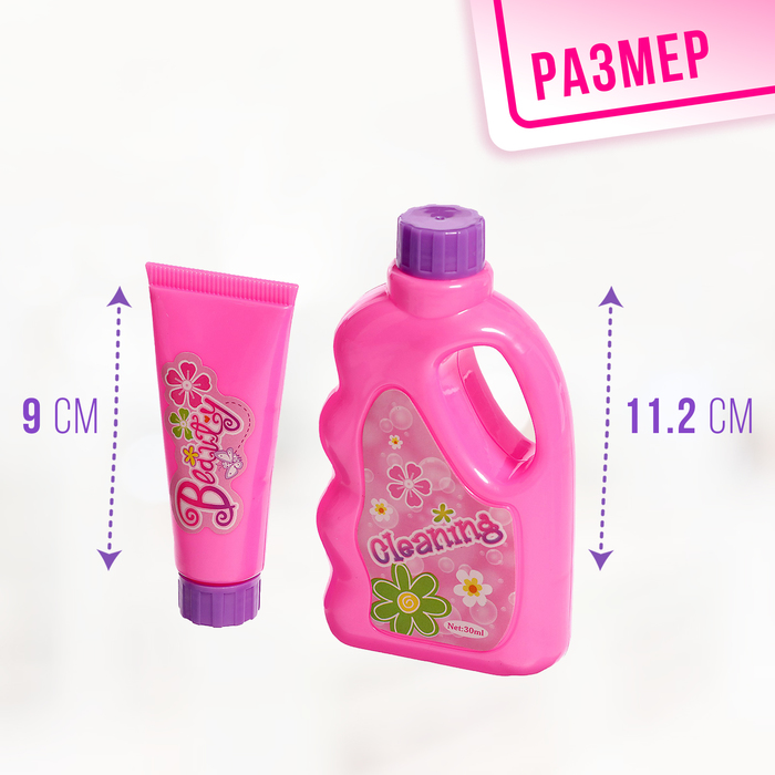 - Повторяя за взрослыми, девочка учится заботиться о чистоте, развивает координацию и самостоятельность. Набор прививает любовь к порядку без скучных наставлений.