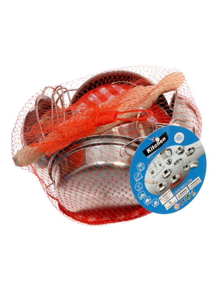 Металлическая посуда выглядит реалистично, приятно ощущается в руках и рассчитана на активную игру. Ребёнок может «варить», «жарить», перекладывать блюда, пользоваться кухонными аксессуарами и осваивать базовые навыки аккуратности и последовательных действий. Ребёнок использует предметы по назначению, повторяя действия взрослых в игре.