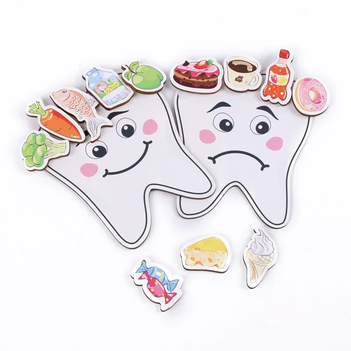 Игровой набор «Наши зубки» поможет вам рассказать ребёнку всё о зубах: для чего они нужны, как их чистить, почему не нужно бояться стоматологов, какие продукты вредны для зубов и почему. С помощью игры ребёнок поймёт какая еда полезна для зубов, а какая может нанести вред. Набор подойдёт для занятий в детском саду, школе и дома.