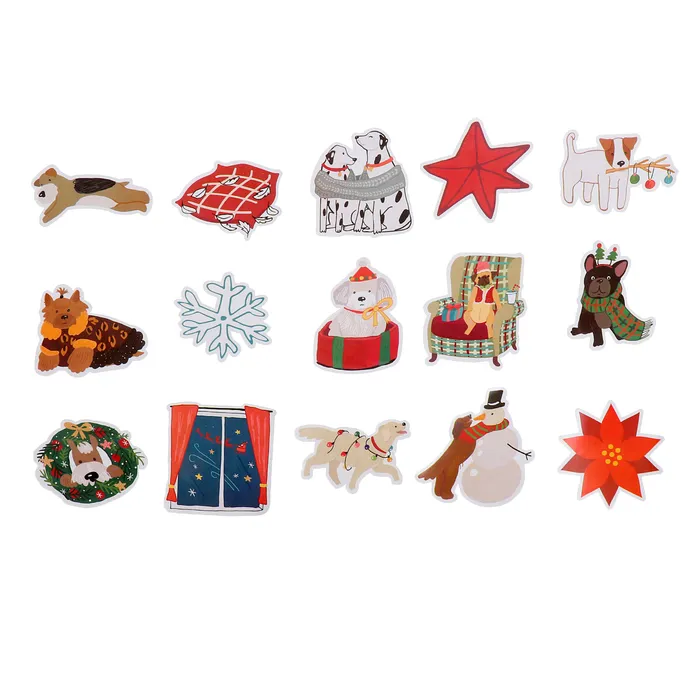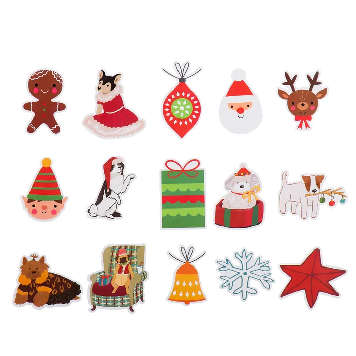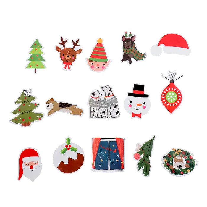 - В комплект входят 15 наклеек с новогодней тематикой, которые можно использовать в качестве украшения различных поверхностей.