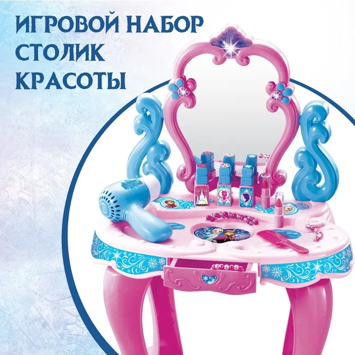 Красивый и многофункциональный столик для создания сказочного макияжа торговой марки Disney станет лучшим подарком для маленькой принцессы. Наряжаться на праздник станет гораздо проще, ведь теперь у малышки есть всё необходимое для воплощения идеального образа.