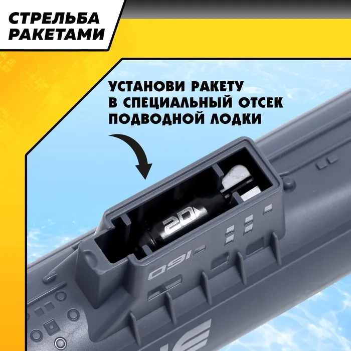 • Имитация боевой подводной лодки с функцией запуска ракет (9 ракет в комплекте).