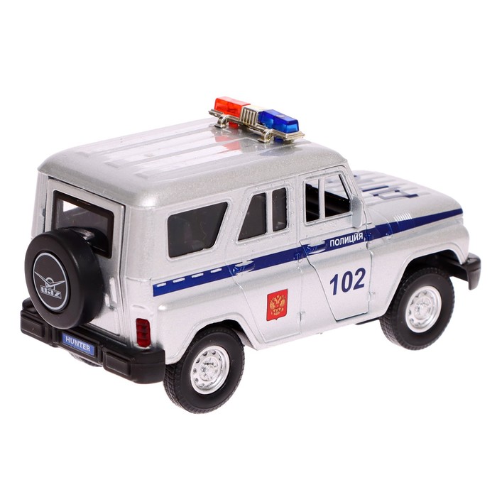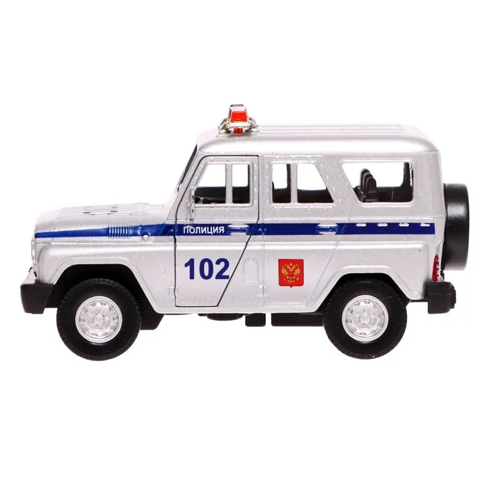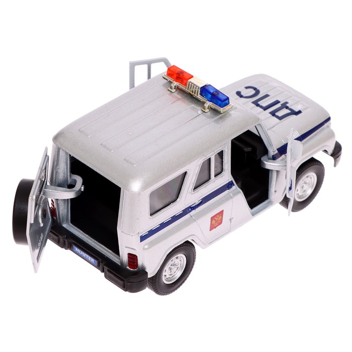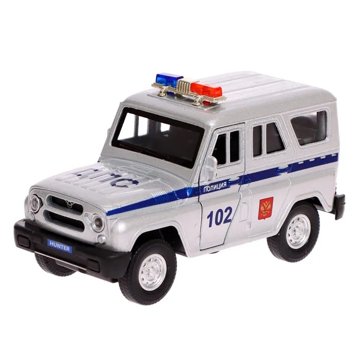- Машина УАЗ Хантер: полицейский внедорожник с открывающимися дверями и багажником, оснащённый мигалками и декором ДПС.
