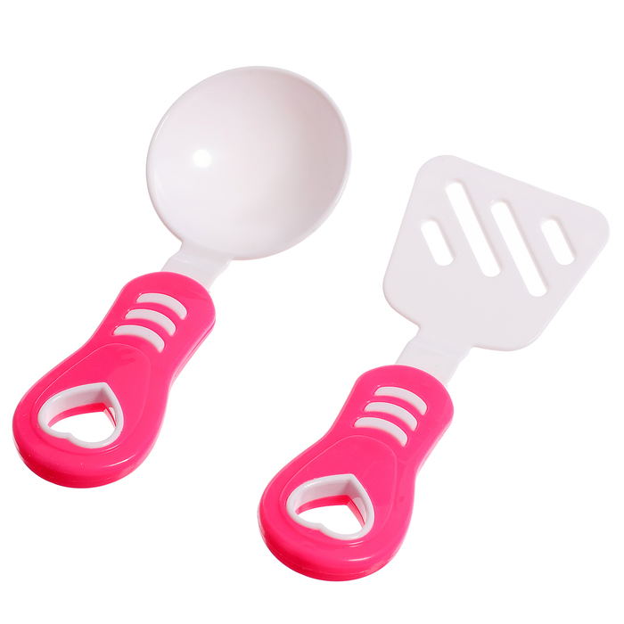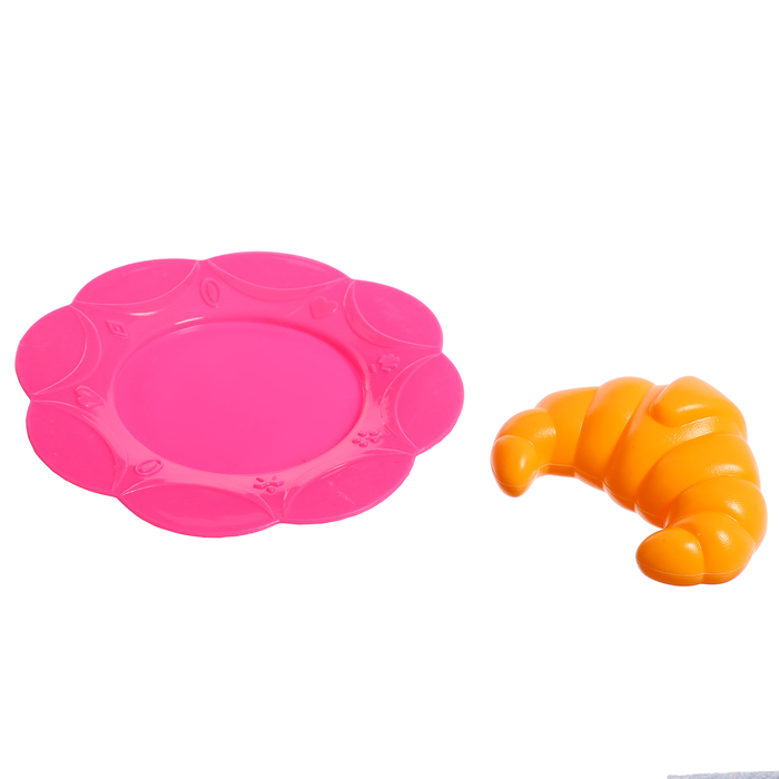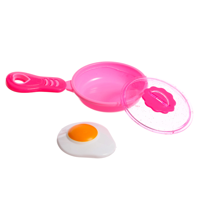 - Разнообразие аксессуаров: кастрюля ,сковорода, солонка, перечница, тарелка, столовые приборы, лопатка, яичница, круасан — помогают развивать фантазию и координацию движений.