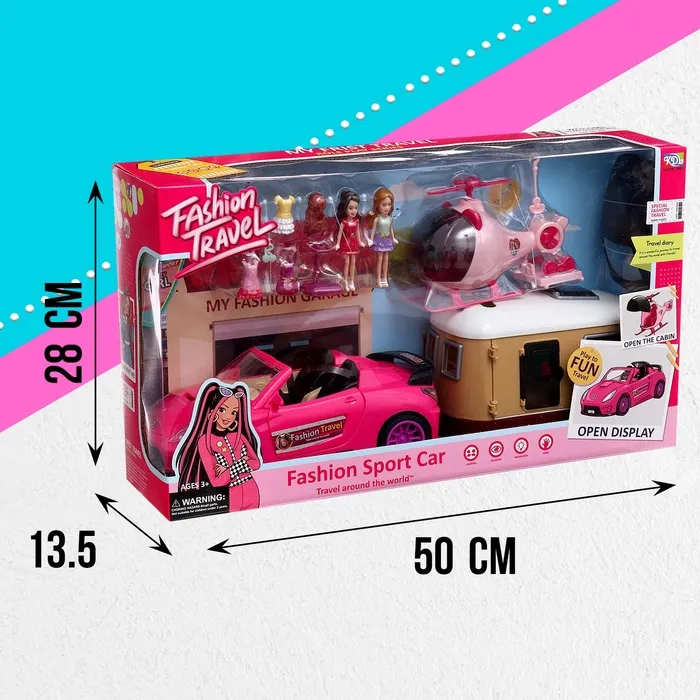 Игровой набор «Путешественницы» – это приглашение в незабываемое приключение! Вместе с двумя стильными куклами дети смогут отправиться в путешествие на автомобиле с прицепом, а затем взлететь на вертолете для новых открытий.
