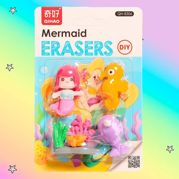 Игровой набор ластиков «Русалочка» - это интересное дополнение для игр с куклами и пупсами. В наборе 4 ярких ластика, каждый из которых выполнен в морской тематике, что делает игру увлекательнее.