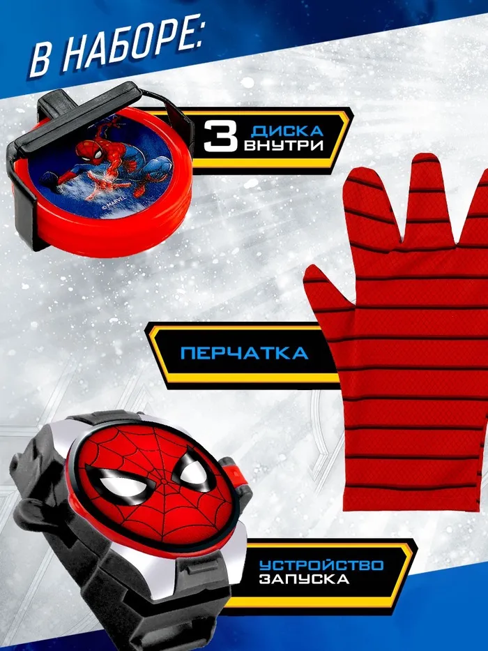 Мечтаешь стать супергероем и спасать мир, как Человек-паук? Тогда этот игровой набор — именно то, что нужно! Надевай фирменную красно-черную перчатку, заряжай диски в браслет и запускай их, словно настоящие паучьи снаряды.