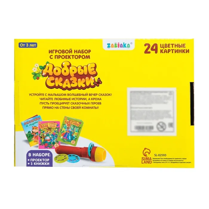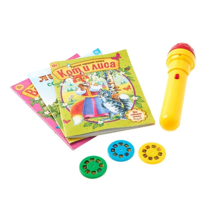 Хотите устроить малышу волшебный вечер сказок? Набор «Однажды в сказке» вам в этом поможет. В него входит проектор-фонарик с картинками-слайдами и 3 книжки с русскими народными сказками.