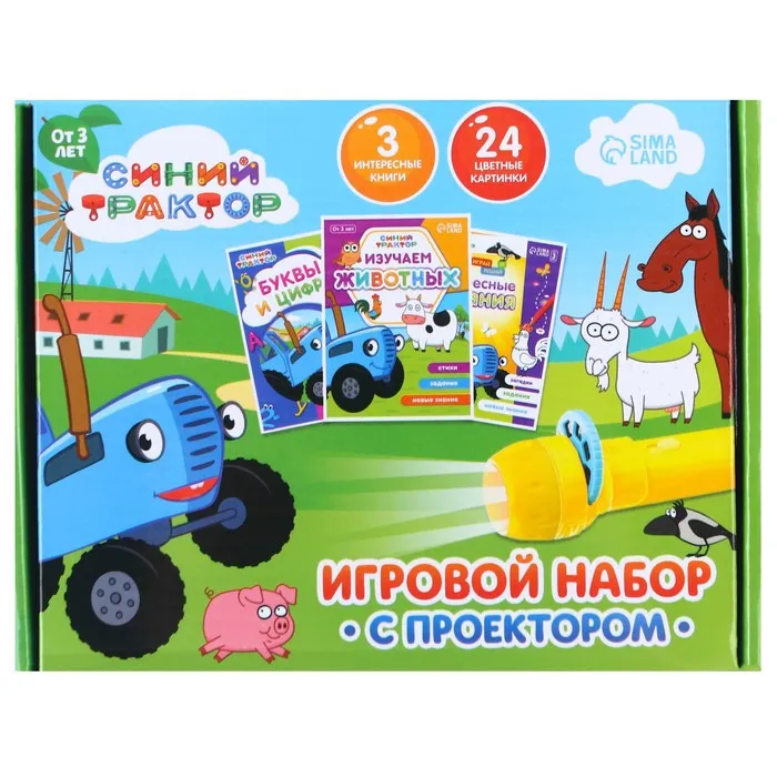 Игровой набор «Синий трактор» с проектором и книгами станет прекрасным началом для развития творческих способностей ребёнка.