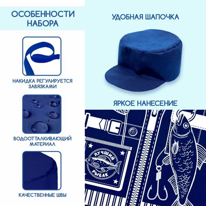 Набор «Лучший рыбак»— станет отличным костюмом все для маленьких искателей приключений. В комплект входят жилетка и кепка, которые помогут маленькому рыбаку почувствовать себя настоящим профессионалом своего дела.