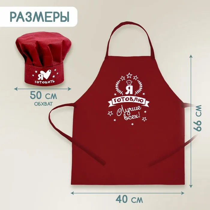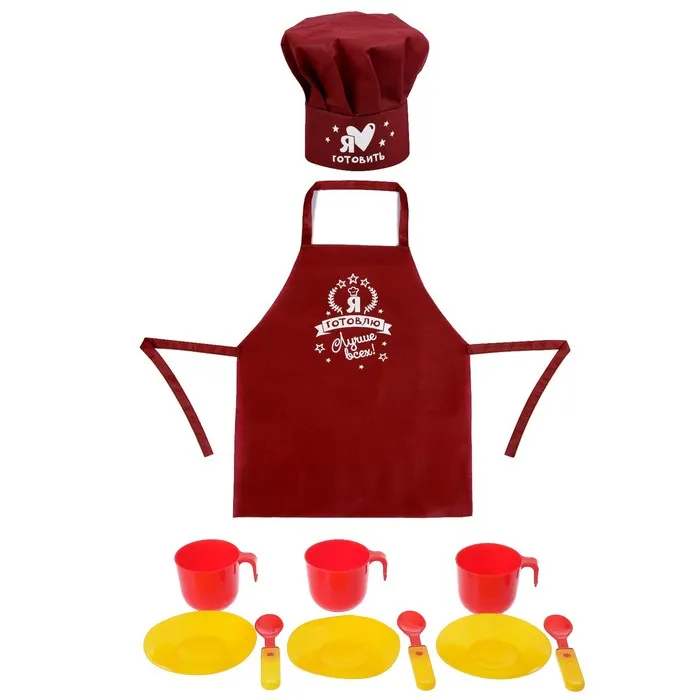 Фартук и поварской колпак подойдут для детей от 3 до 7 лет.