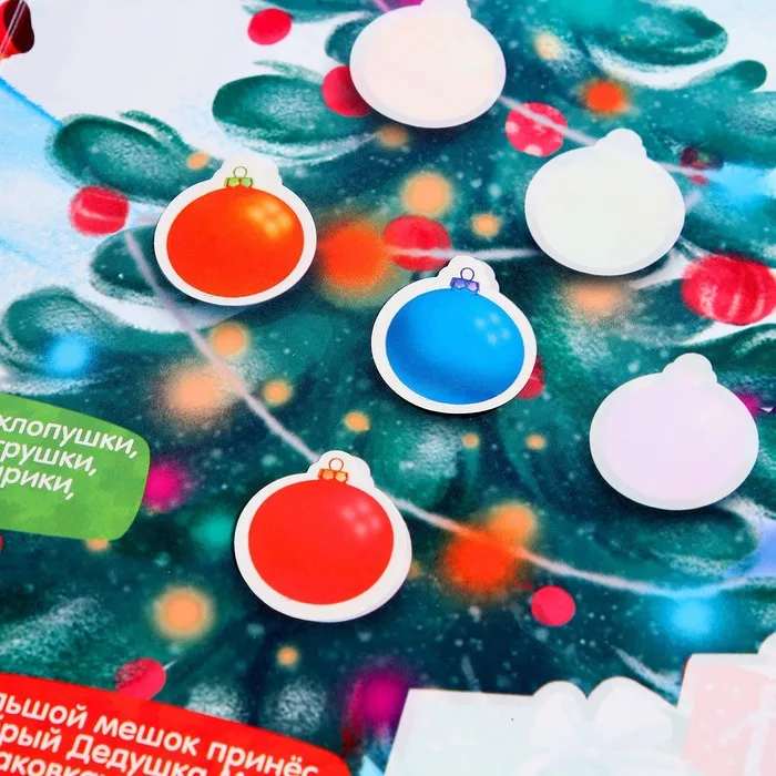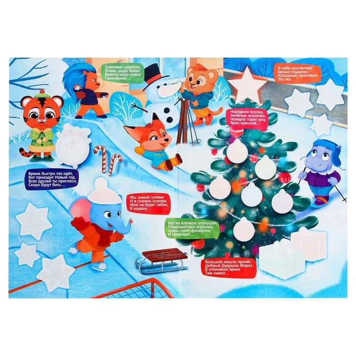 Игровой набор со светящимися наклейками создаст настроение праздника. Малышу предстоит отгадывать загадки и выполнять задания с плаката, используя многоразовые стикеры.