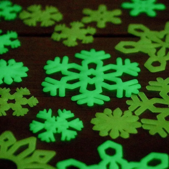 А светящимися в темноте снежинками можно украсить комнату!