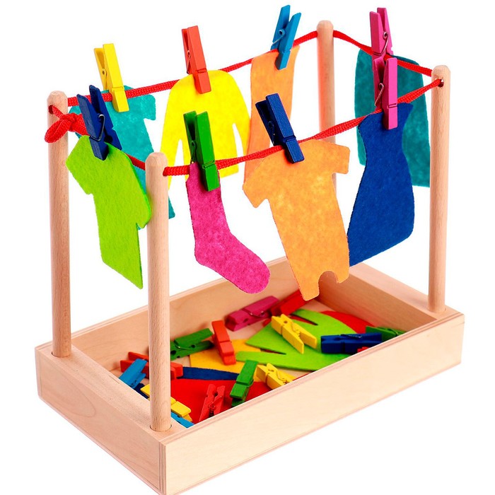 «Стирка» помогает ребёнку освоить важные навыки: различать цвета и формы, развивать мелкую моторику и координацию движений. Играя с прищепками и предметами одежды, малыш учится выполнять последовательные действия, тренирует внимание и терпение. Задача повесить одежду определённых цветов на верёвку стимулирует логическое мышление и творческий подход. Это не только занимательное занятие, но и источник новых знаний, которые формируют базовые когнитивные навыки. Каждый этап игры стимулирует самостоятельность и уверенность в своих силах.