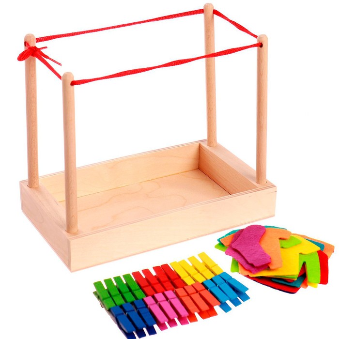Игровой набор «Стирка» Основание, 24 прищепки, 4 предметов одежды, 22×13×40 см — Характеристики