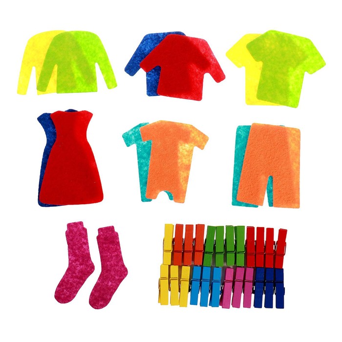• Предметы одежды из фетра разноцветные и мягкие, что добавляет игре тактильный элемент и интерес к материалам.