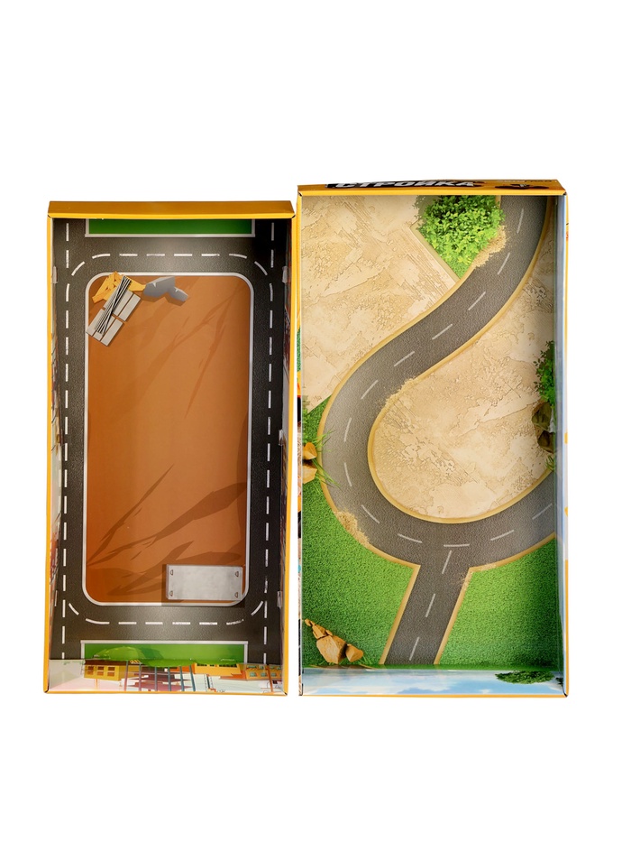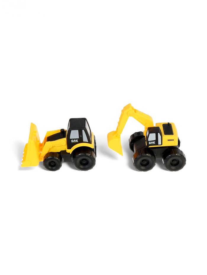 - Комплект строительной техники: четыре инерционные машинки готовы к работе на площадке. Устойчивое основание крана делает игру безопасной и стабильной.