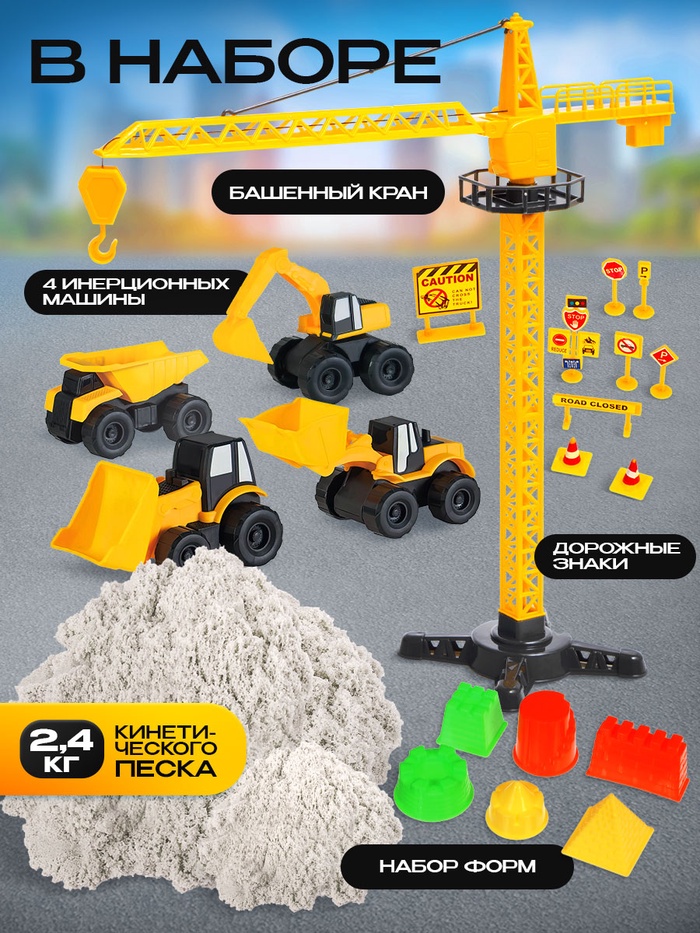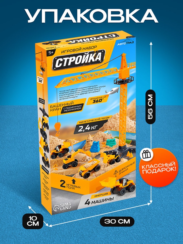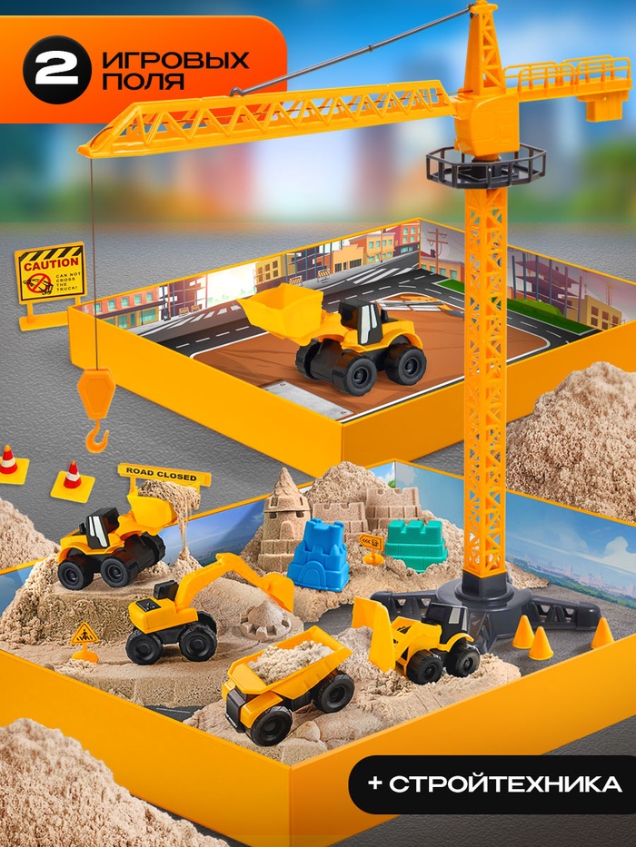 Стройте, фантазируйте и управляйте настоящей техникой! Игровой набор «Стройка» со строительной техникой и кинетическим песком — это целая стройплощадка для юного инженера. Ребёнок сможет возводить объекты, управлять краном и создавать собственные дороги.
