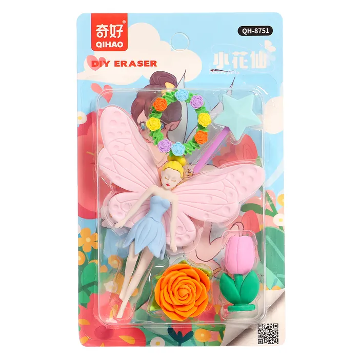 - Ластики в виде феи и цветов легко справляются с удалением карандашных линий