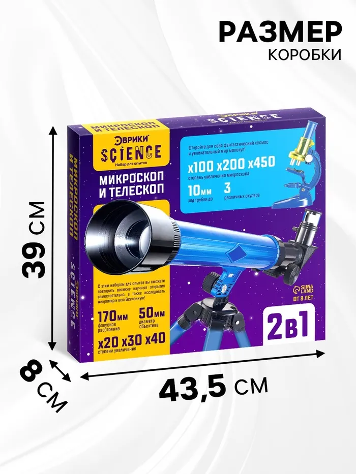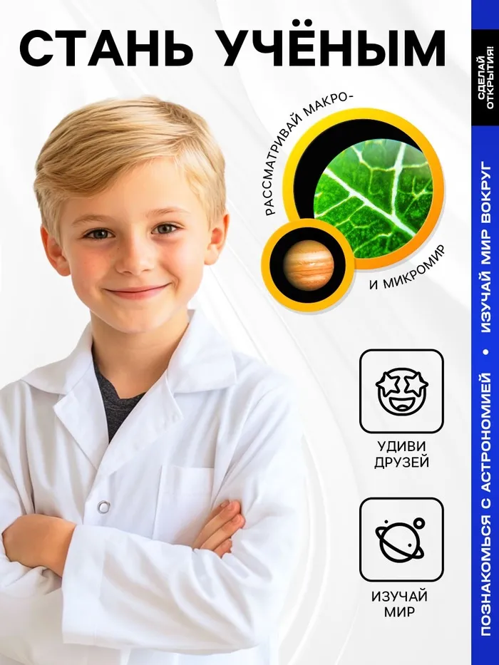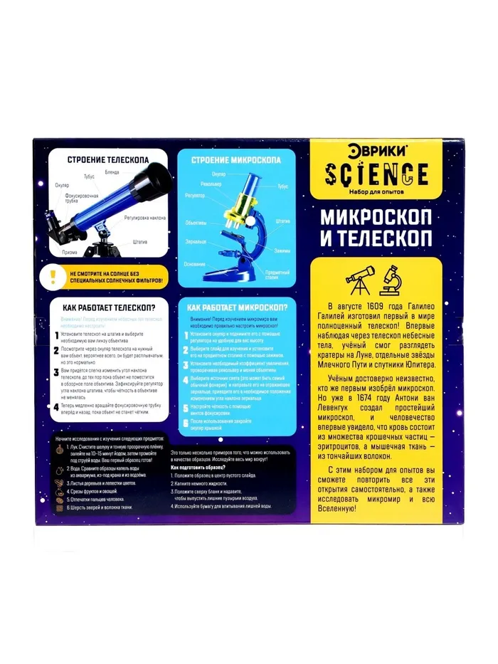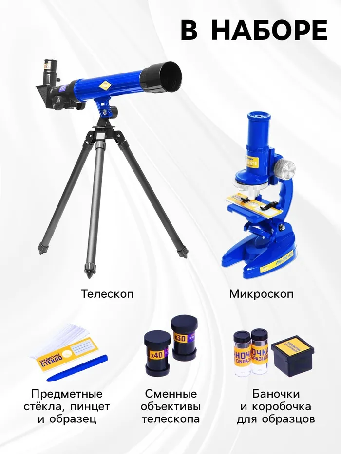 Малыш любит исследования? Предлагаем вашему вниманию увлекательный набор биолога. С ним ребёнок научится пользоваться микроскопом и телескопом, который продемонстрирует, как выглядят клетки живых организмов.