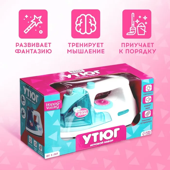 Каждая малышка мечтает быть как мама: хозяйственной, аккуратной и трудолюбивой. В этом ей поможет набор с утюгом и фартуком, с которым ребёнок придумает множество увлекательных сюжетно-ролевых игр. Набор упакован в красочную коробочку, поэтому его можно вручить в подарок даже без дополнительного праздничного оформления.