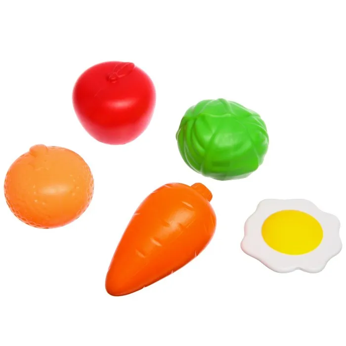 - 24 аксессуара в комплекте — посуда, продукты и мелкие детали помогут придумать множество историй. Ребёнок может готовить, накрывать на стол или устраивать чаепитие с игрушками.