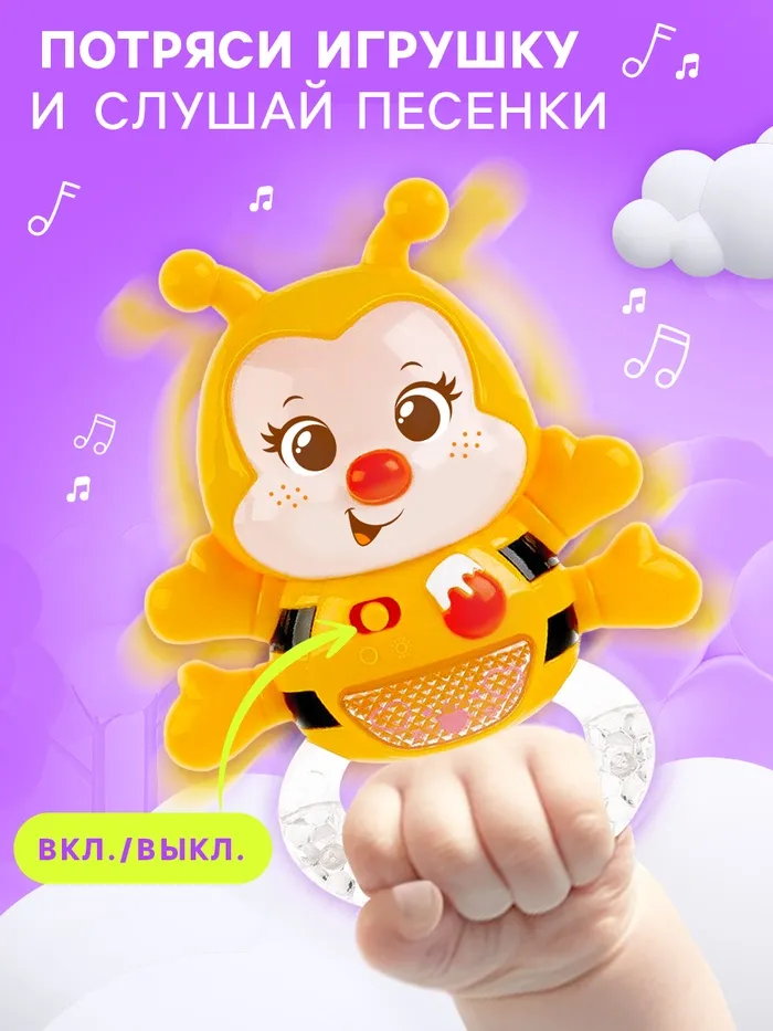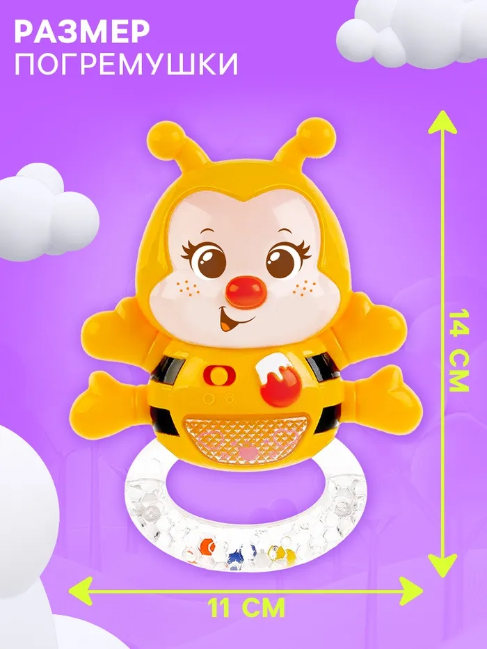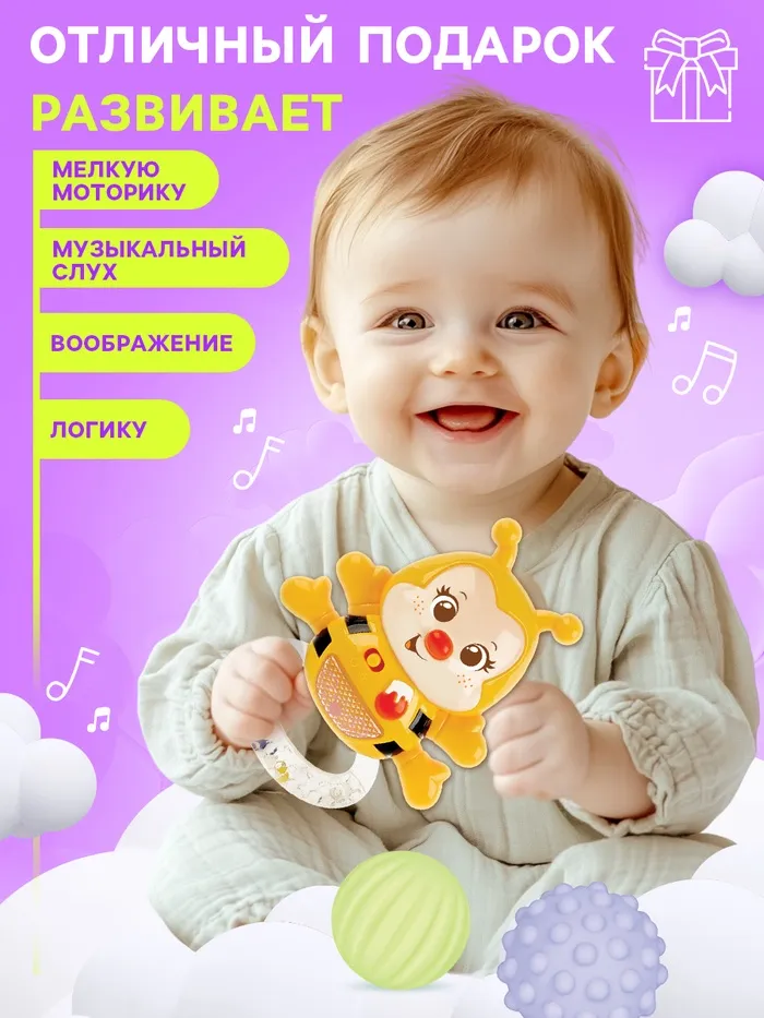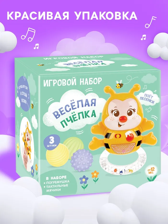 Игровой набор «Весёлая пчёлка», музыкальная погремушка, свет, 3 массажных мячика — Характеристики