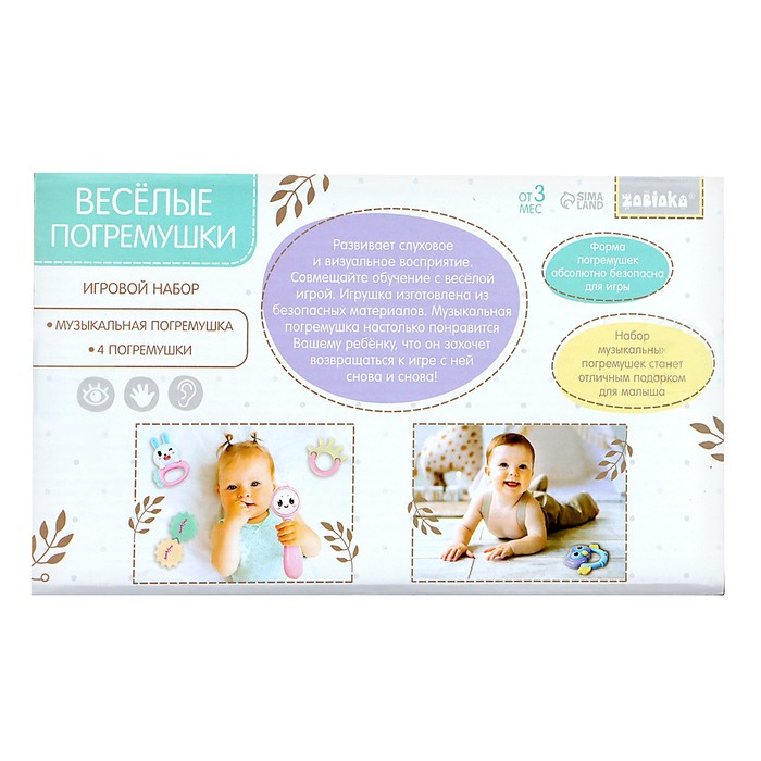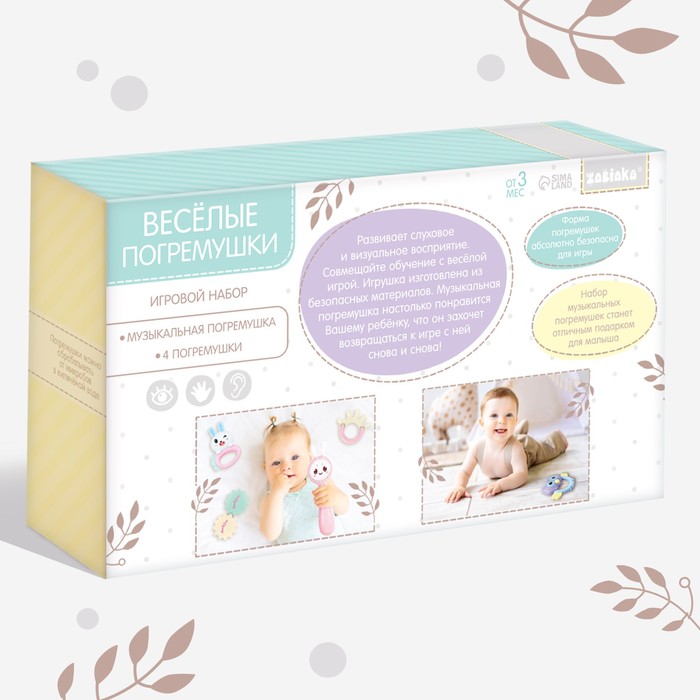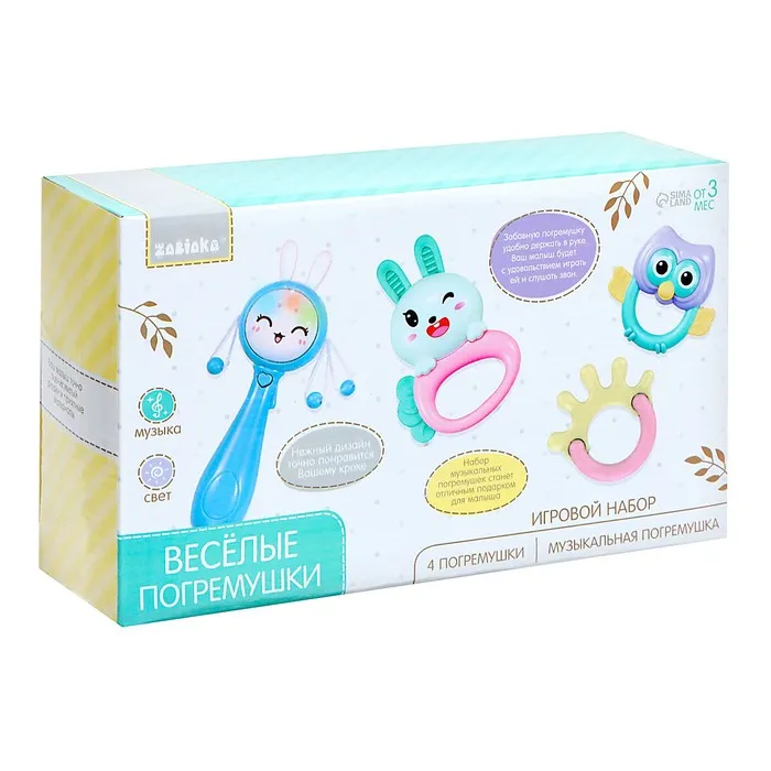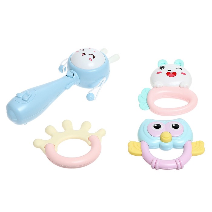 Игровой набор «Весёлые погремушки», звук, свет, цвет голубой — Характеристики