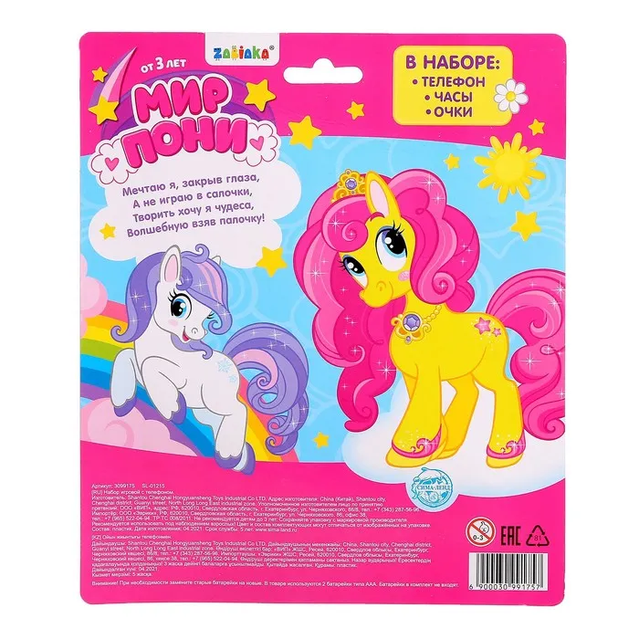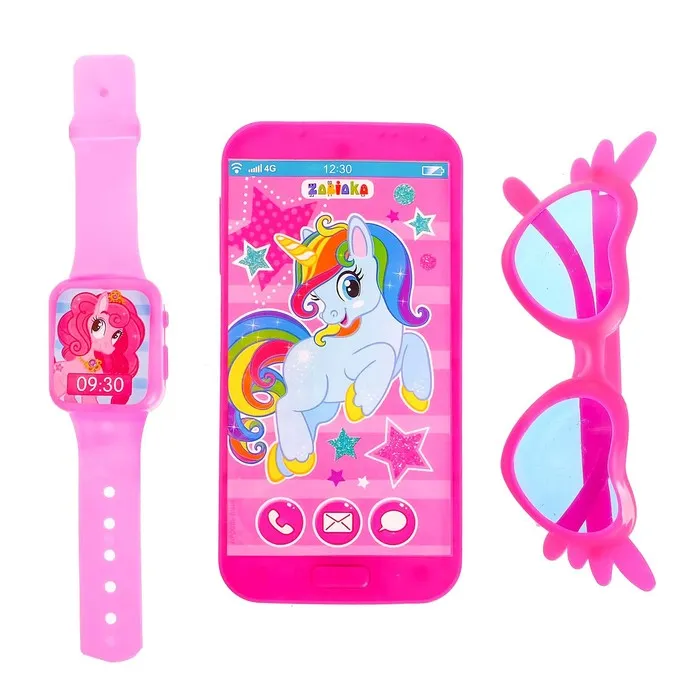 Игровой набор «Волшебный мир пони»: детский телефон, очки, часы, русская озвучка, цвет розовый — Характеристики