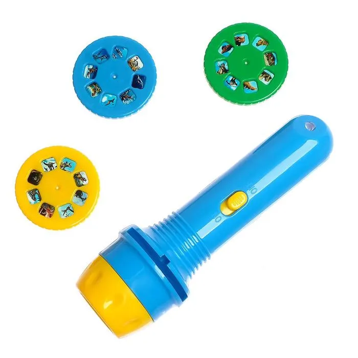- В набор входят проектор-фонарик, 3 слайда (24 цветные картинки) и 9 светящихся наклеек.