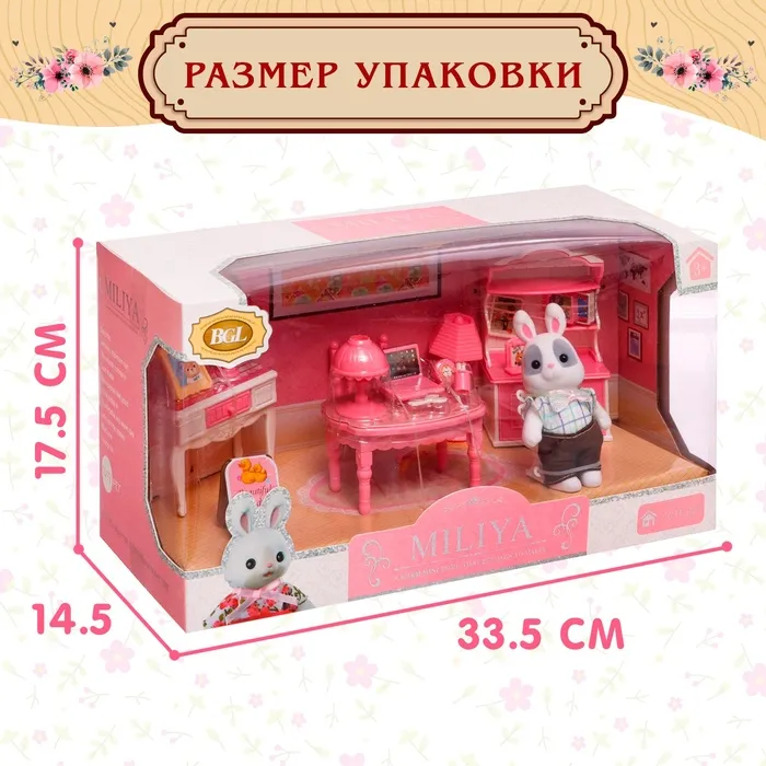 С набором мебели и зайчиком ваша принцесса обустроит уютный дом для своих любимых игрушек и придумает множество увлекательных сюжетно-ролевых игр. Набор упакован в красочную коробочку, поэтому его можно вручить в подарок даже без дополнительного праздничного оформления.