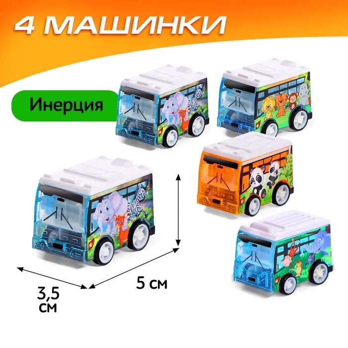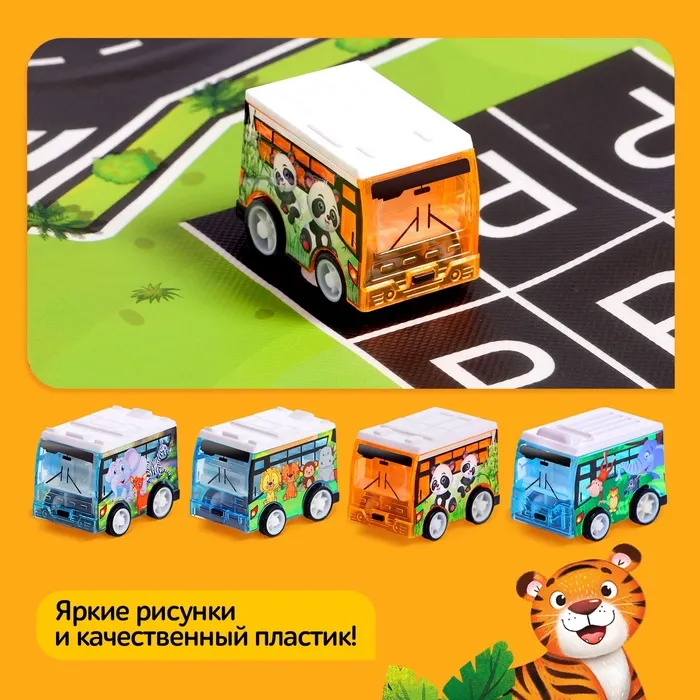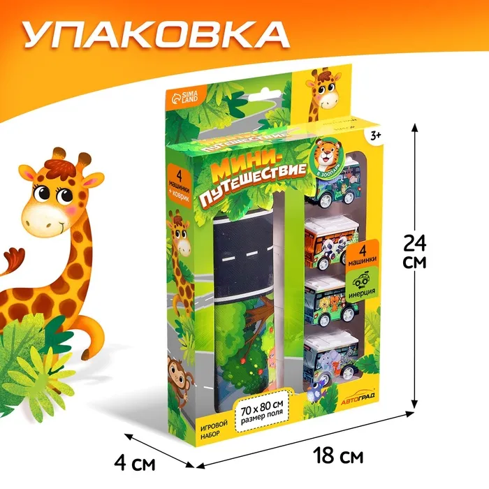 Игровой набор «Зоопарк», 4 инерционные машинки, коврик-дорога — Характеристики