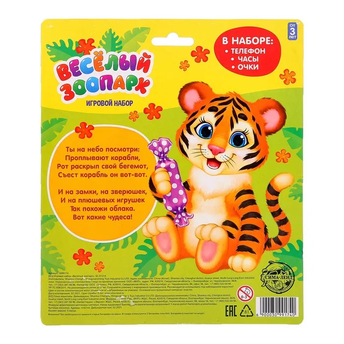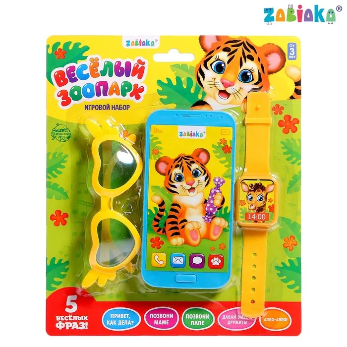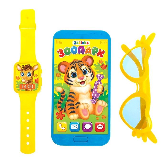 Игровой набор «Зоопарк»: детский телефон, очки, часы, русская озвучка, цвет голубой — Характеристики