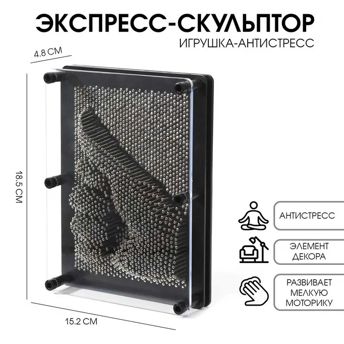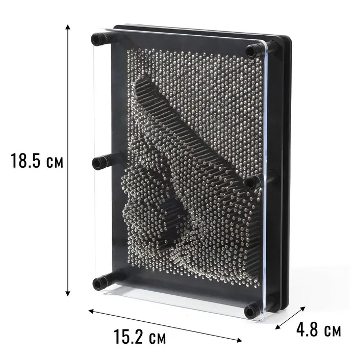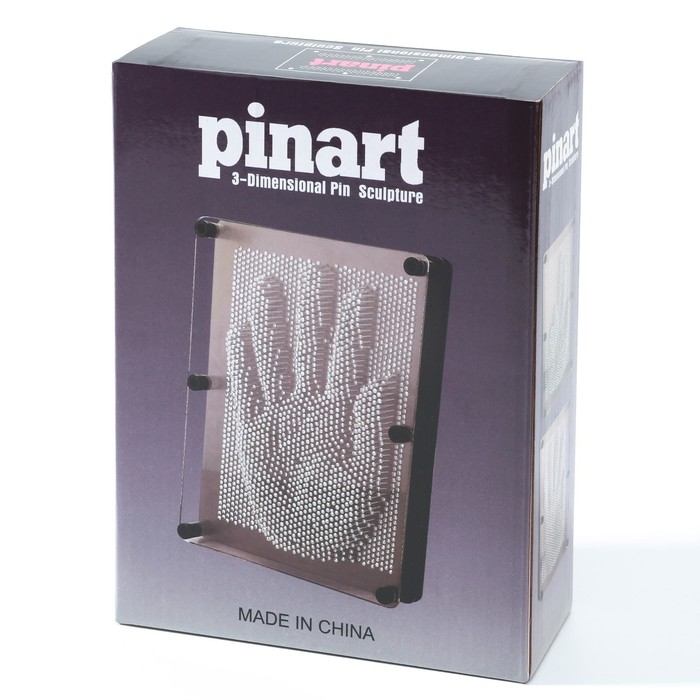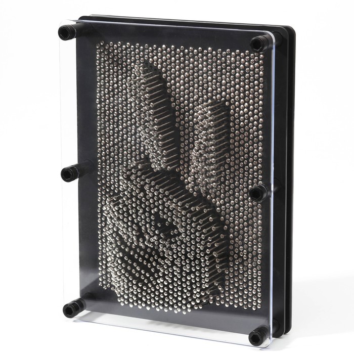 Игрушка антистресс PinART, экспресс скульптор 3D, 15.2×4.8×18.5 см — прибор, представляющий собой пластину-основание, на которой закреплены несколько сотен металлических стерженьков-гвоздиков, закрытых прозрачной передней панелью.