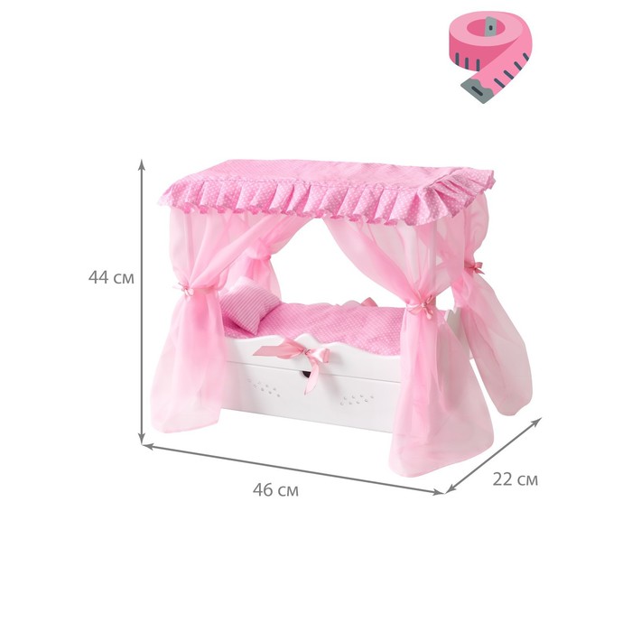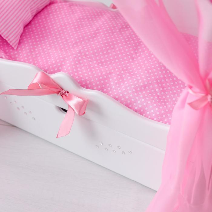 Игрушка детская: кроватка с царским балдахином, постельным бельем и выдвижным ящиком, цвет белый — Характеристики
