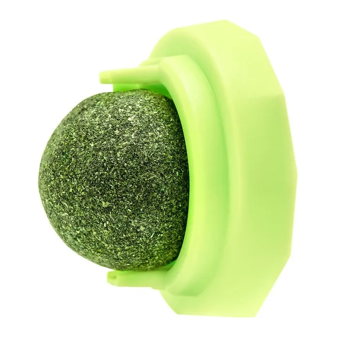 Конструкция вращения позволяет кошке облизывать шарик равномерно. Задняя часть игрушки из кошачьей мяты оснащена двусторонней липкой лентой, которую можно использовать для приклеивания стен, окон, пола, ножек стола и т.д.