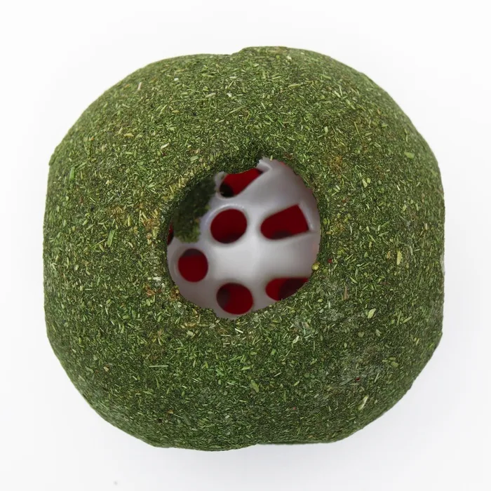 Прессованная кошачья мята: Игрушка наполнена прессованной кошачьей мятой, которая издает характерный аромат, вызывающий приподнятое настроение у кошек. Этот запах побуждает питомцев активно играть, что помогает развивать их охотничьи инстинкты и поддерживать физическую активность.