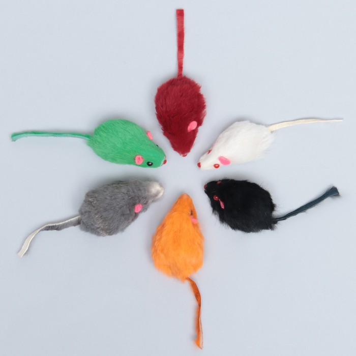 Игрушка для кошек "Малая мышь", натуральный мех кролика, 5 см, микс цветов — Характеристики