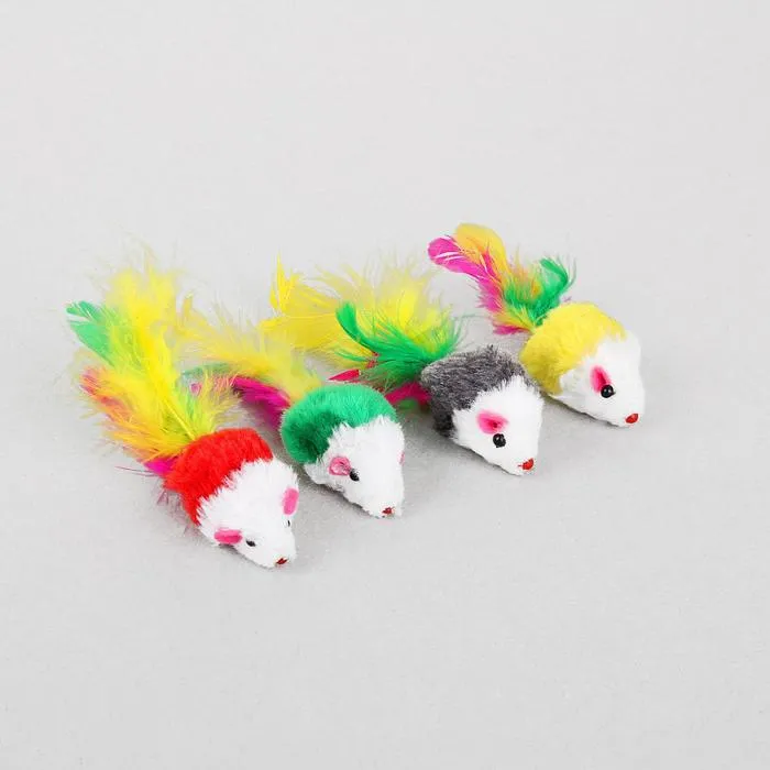 Игрушка для кошек "Малая мышь" с перьями, 5 см, микс цветов