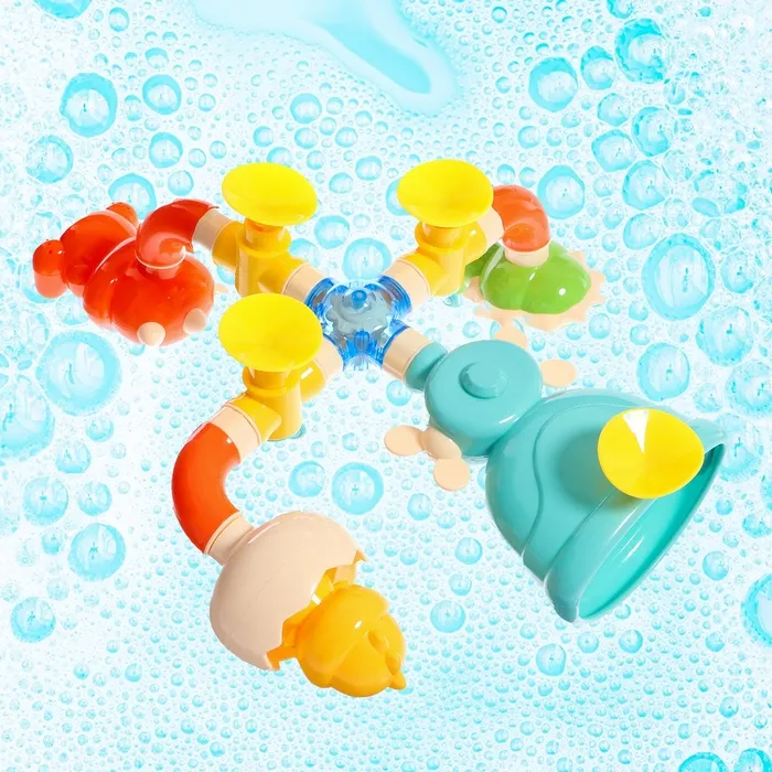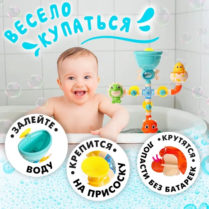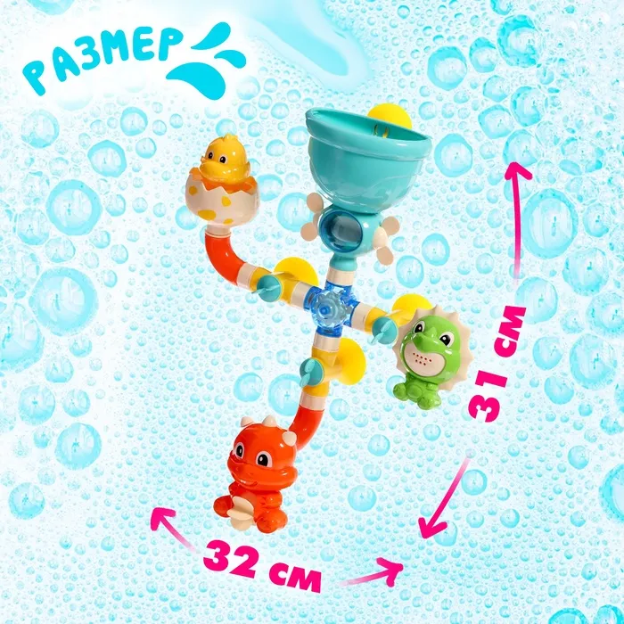 В процессе игры ребёнок тренирует мелкую моторику и развивает воображение. Манипуляции с элементами игрушки помогут малышу освоить базовые физические свойства воды, такие как течение и движение.