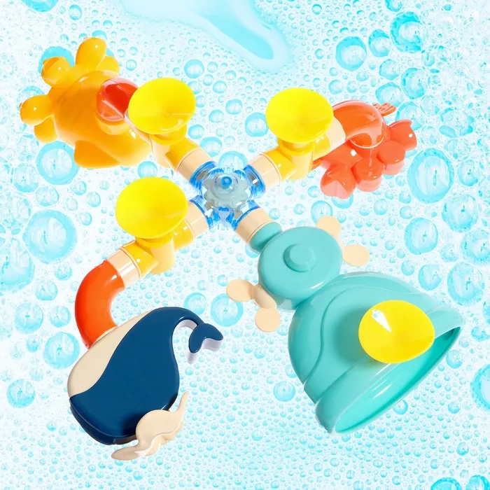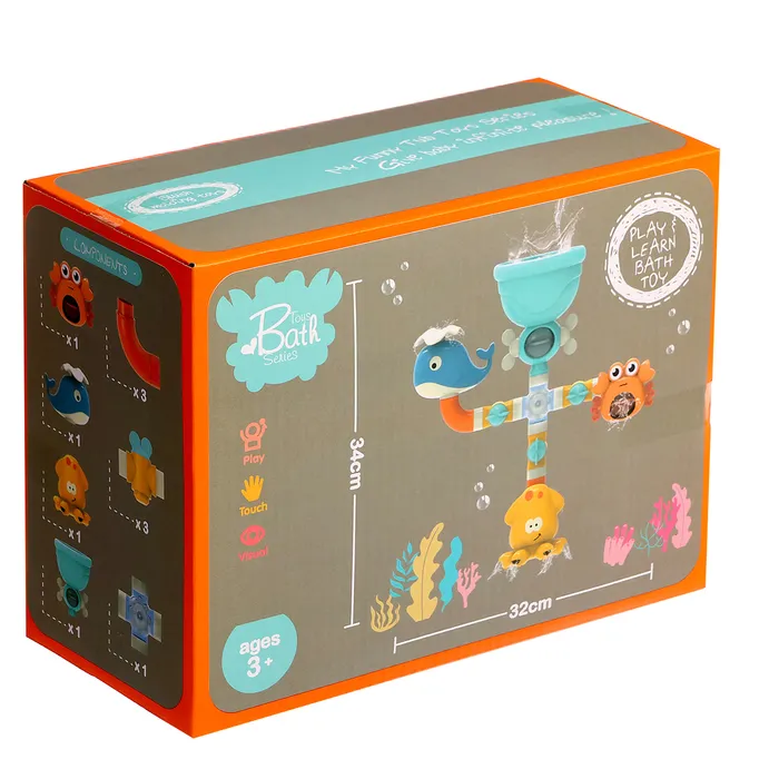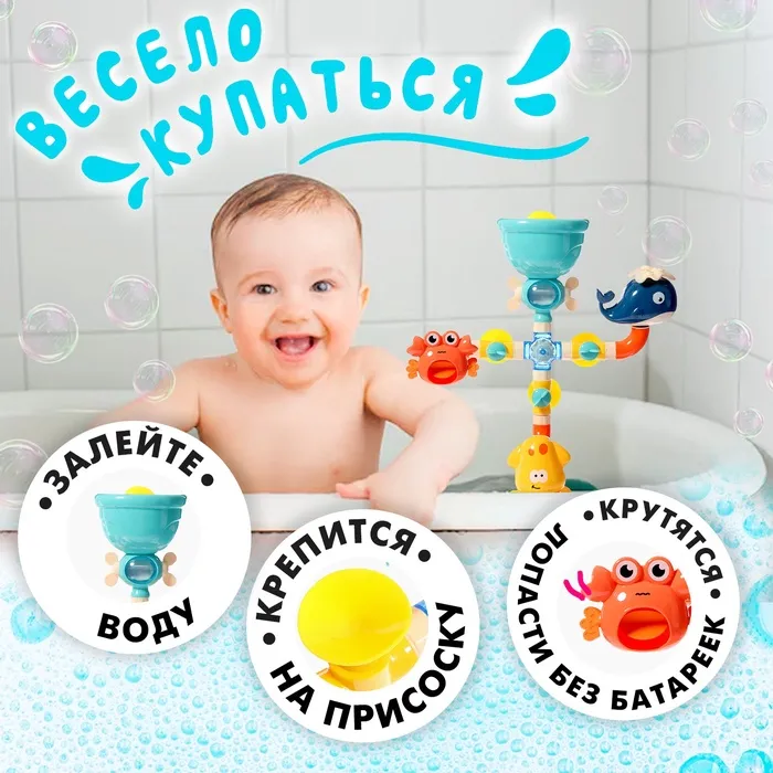 В процессе игры ребёнок тренирует мелкую моторику и развивает воображение. Манипуляции с элементами игрушки помогут малышу освоить базовые физические свойства воды, такие как течение и движение.