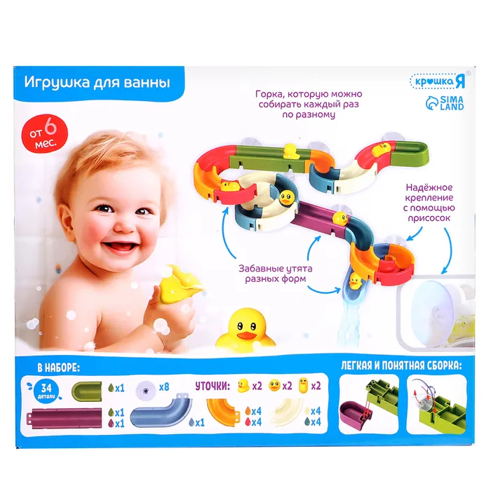 Игрушка для купания в ванной «Весёлые горки», 34 детали — Характеристики