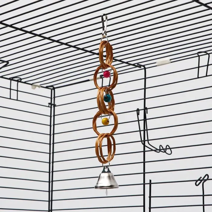 Игрушка - лучшее развлечение и элемент физического развития вашего пернатого друга. Эта игрушка отлично подойдет для домашних животных. Висит на клетке, удобно для них играть и жевать. Привлекательный и забавный, креативный, колокольчик издаст звук и привлечет их внимание.