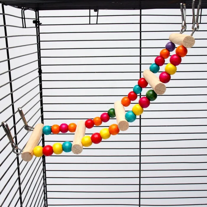 Яркие бусины: Лесенка украшена цветными бусинами, которые привлекают внимание птиц. Яркие цвета стимулируют их любопытство и развивают их визуальное восприятие.