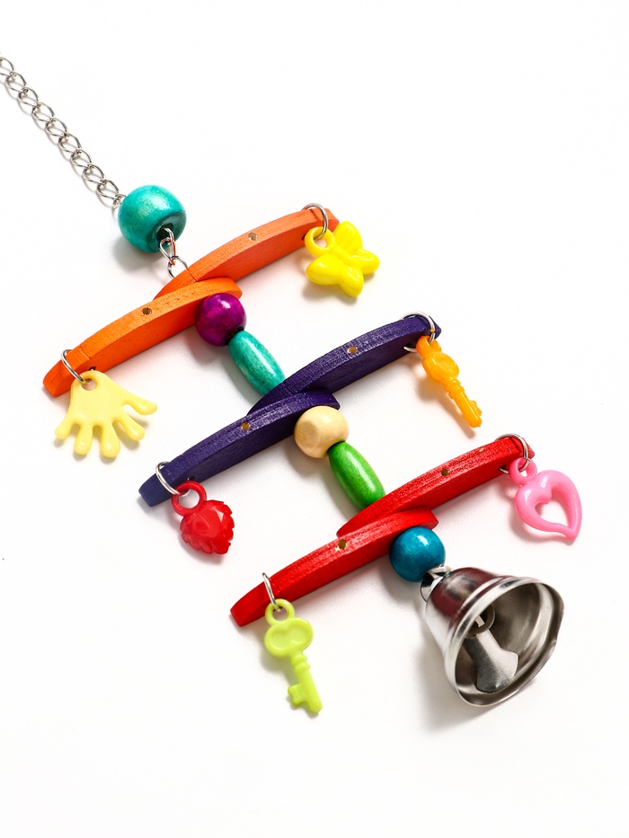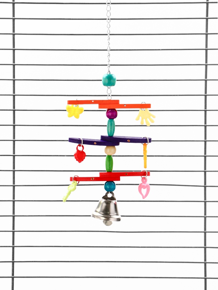 Активность начинается с первой минуты. Игрушка-перекладина с колокольчиком для птиц — не просто насест, а элемент обогащённой среды. Яркие цвета и звук привлекают внимание попугаев, канареек, неразлучников и других активных птиц, провоцируя их на движение, исследование и игру.