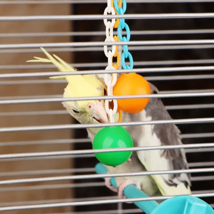 Игрушка для птиц Погремушка, микс. Игрушки 100% не токсичны и безопасны для жевания и грызения. Попугай очень активная птица, ему просто необходимо обеспечить интересное времяпрепровождение, особенно в отсутствии хозяина. А красочный и яркий дизайн привлечет внимание вашего питомца и избавит от скуки.