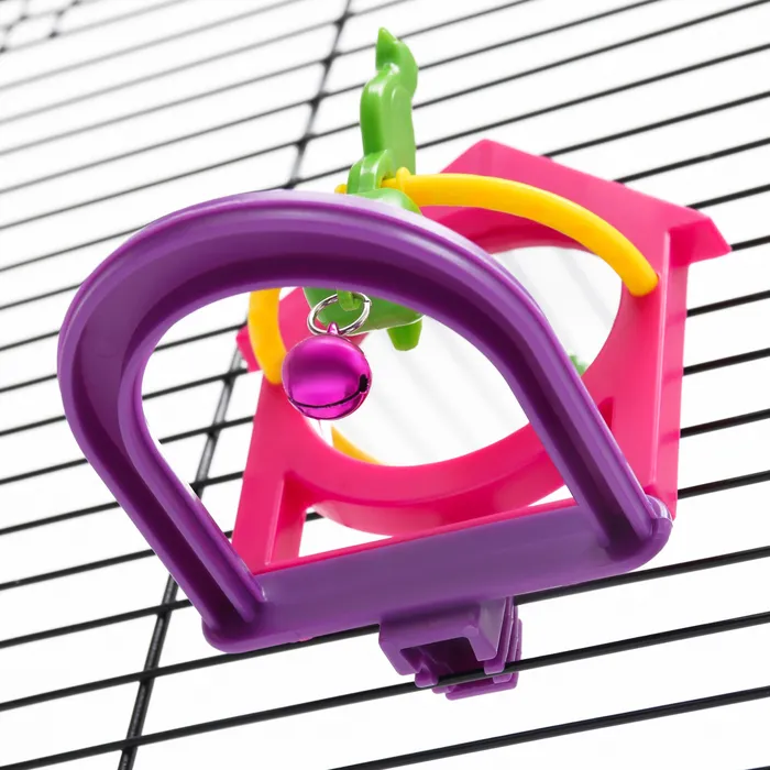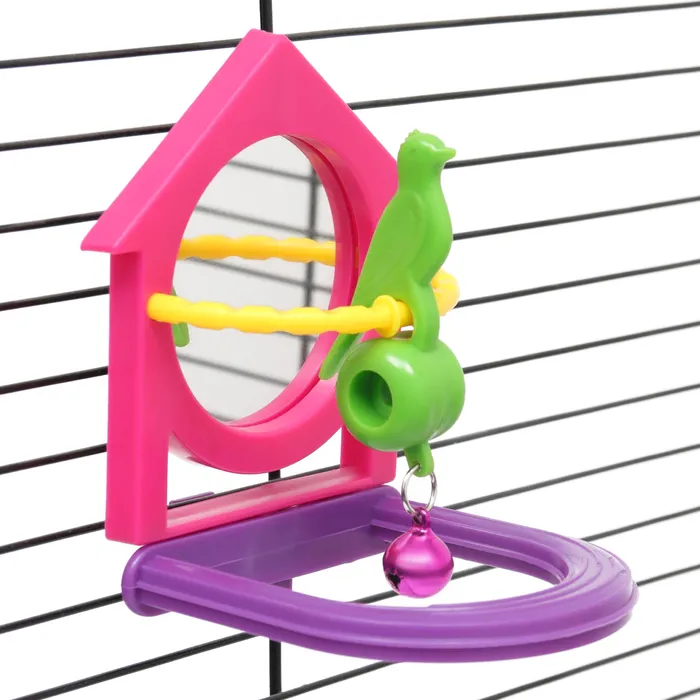 Игрушка для птиц "Зеркало с колокольчиком" - это увлекательное развлечение и функциональное украшение для ваших пернатых друзей. Это зеркало прикрепляется в клетке птицы и предоставляет ей возможность рассматривать себя и окружающее пространство.