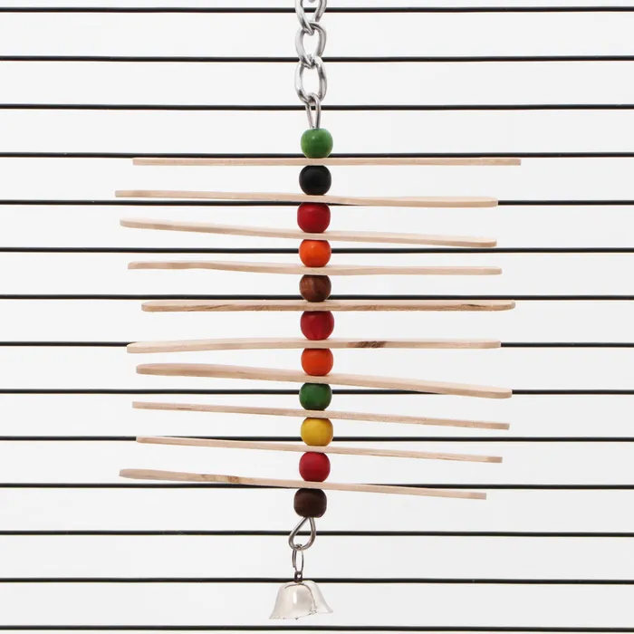 Вертушка с колокольчиком привлекает внимание своей яркостью и динамикой, побуждая птицу к активным играм. Качественная конструкция выдерживает клюв и когти птиц, что делает игрушку долговечной и надежной. Встроенный колокольчик добавляет элемент звукового сопровождения, стимулируя птицу к исследованию и играм, что помогает разнообразить её повседневную активность.