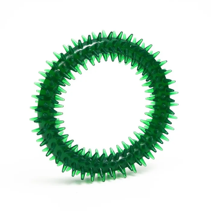 Игрушка для собак "Кольцо с шипами", 12,5 см, прозрачная, зелёная