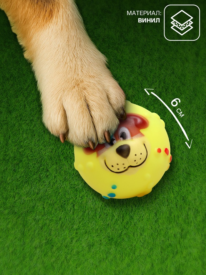 Игрушка для собак «Мяч Джим», 6 см, пищащая, винил, жёлтый — Характеристики
